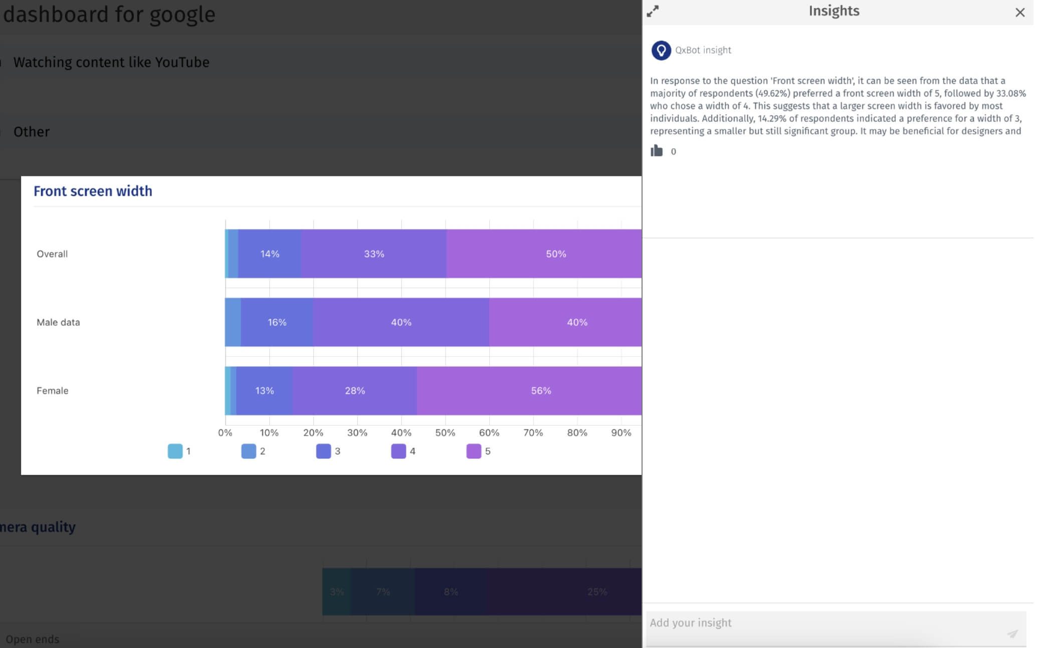 Build dashboards with AI at it’s base within minutes. Use QuestionPro AI to get insights with one click to generate a comprehensive view of the report. Add your insights and let generative AI consolidate data and insights into information nuggets.
