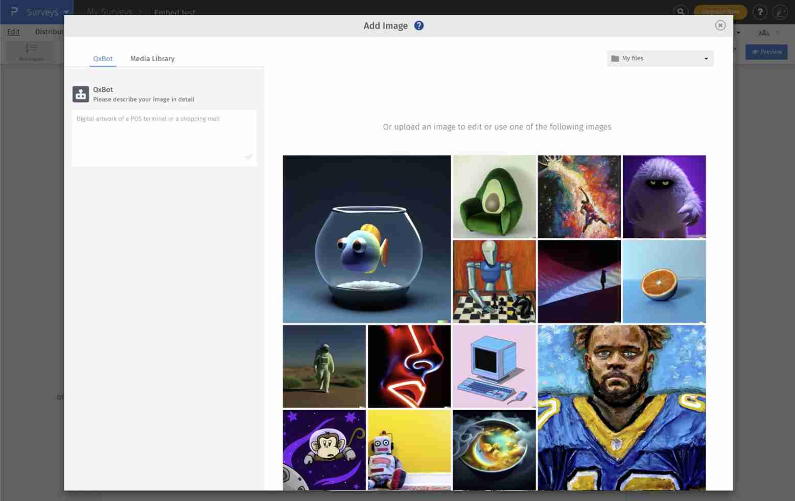 Use the AI engine to create images of your liking within seconds, to use in the survey.
