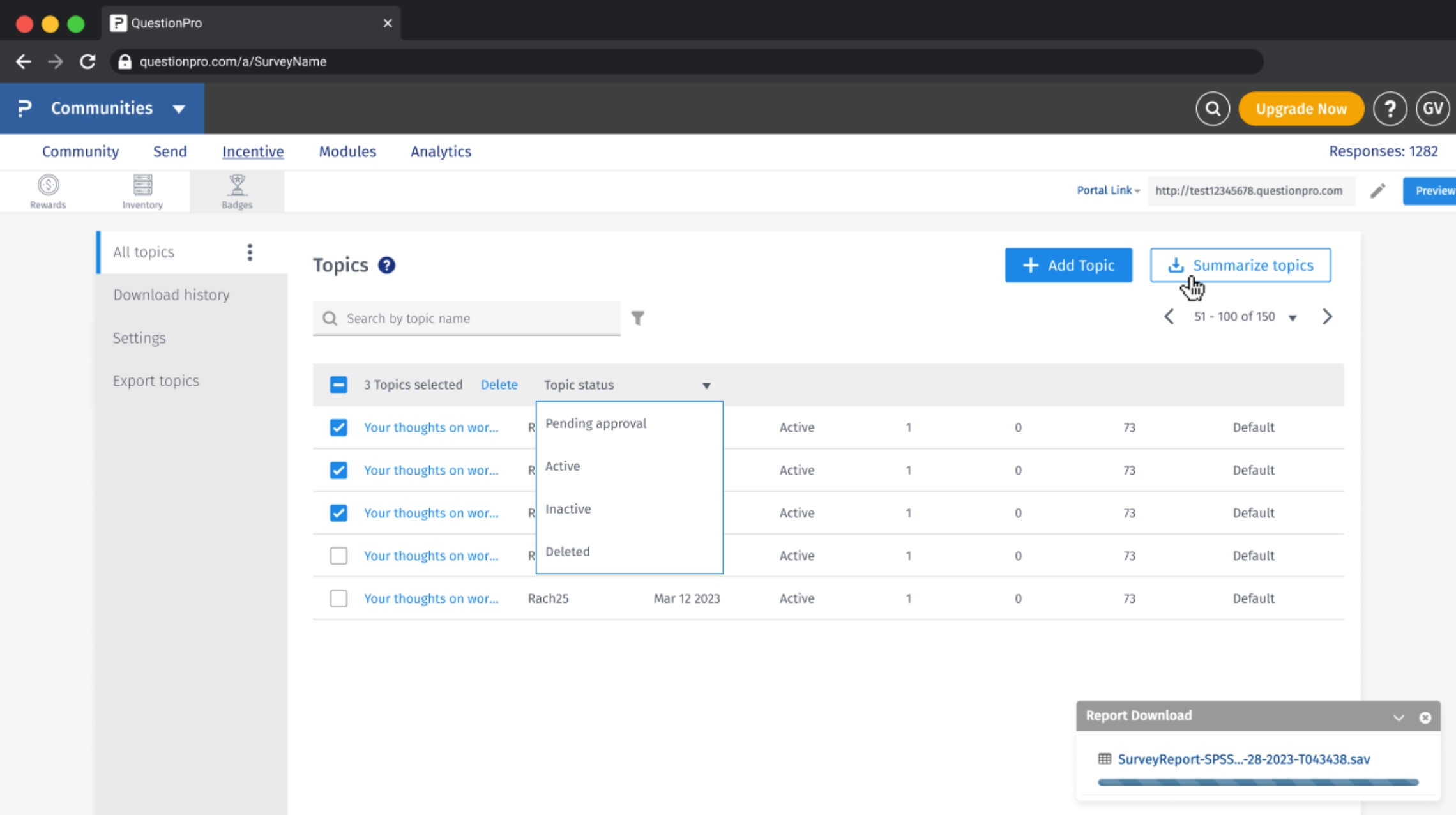 Community admins can get a summary of all topics from the community and also view past summaries to derive insights faster.