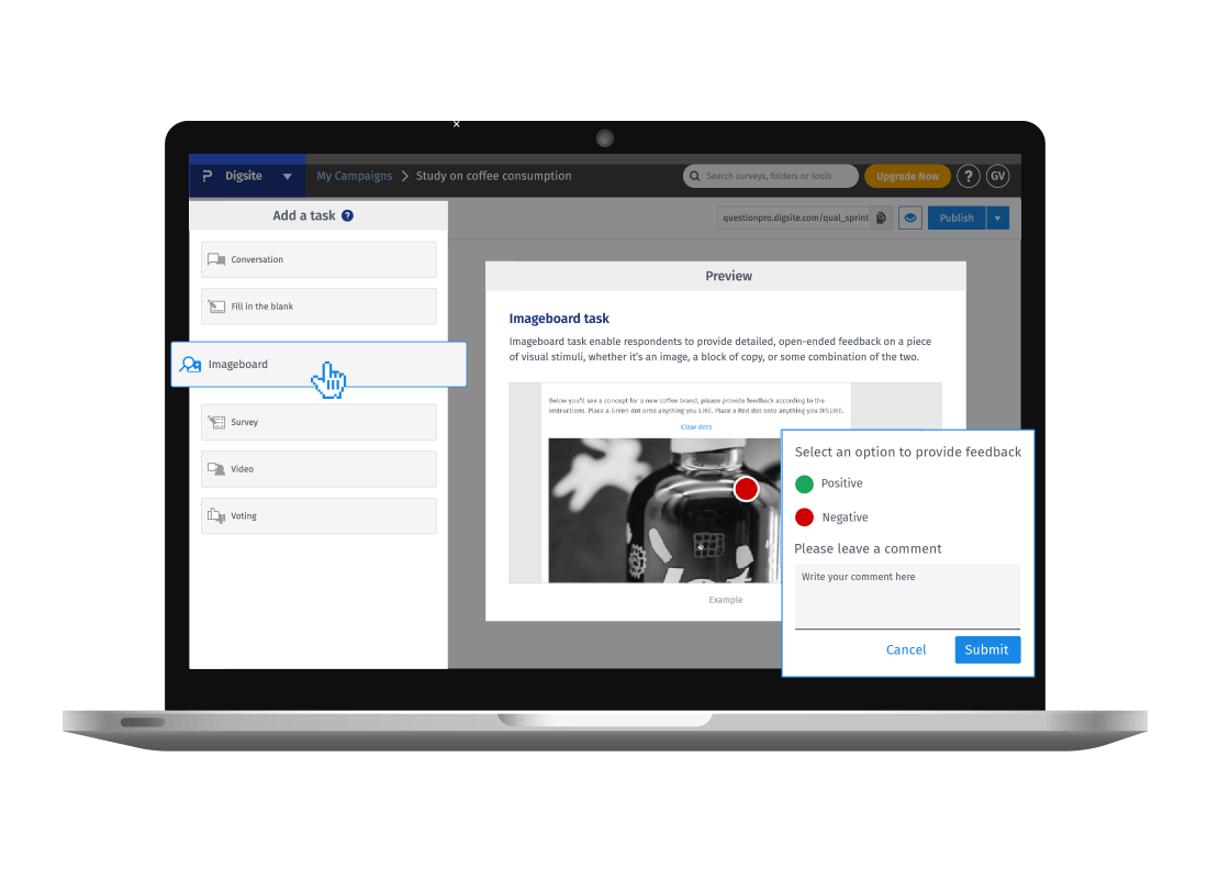 Create simple yet effective images with a simple point and click within the tool to use within the survey or even for custom survey backgrounds. No more worrying about cumbersome images and licensing issues.