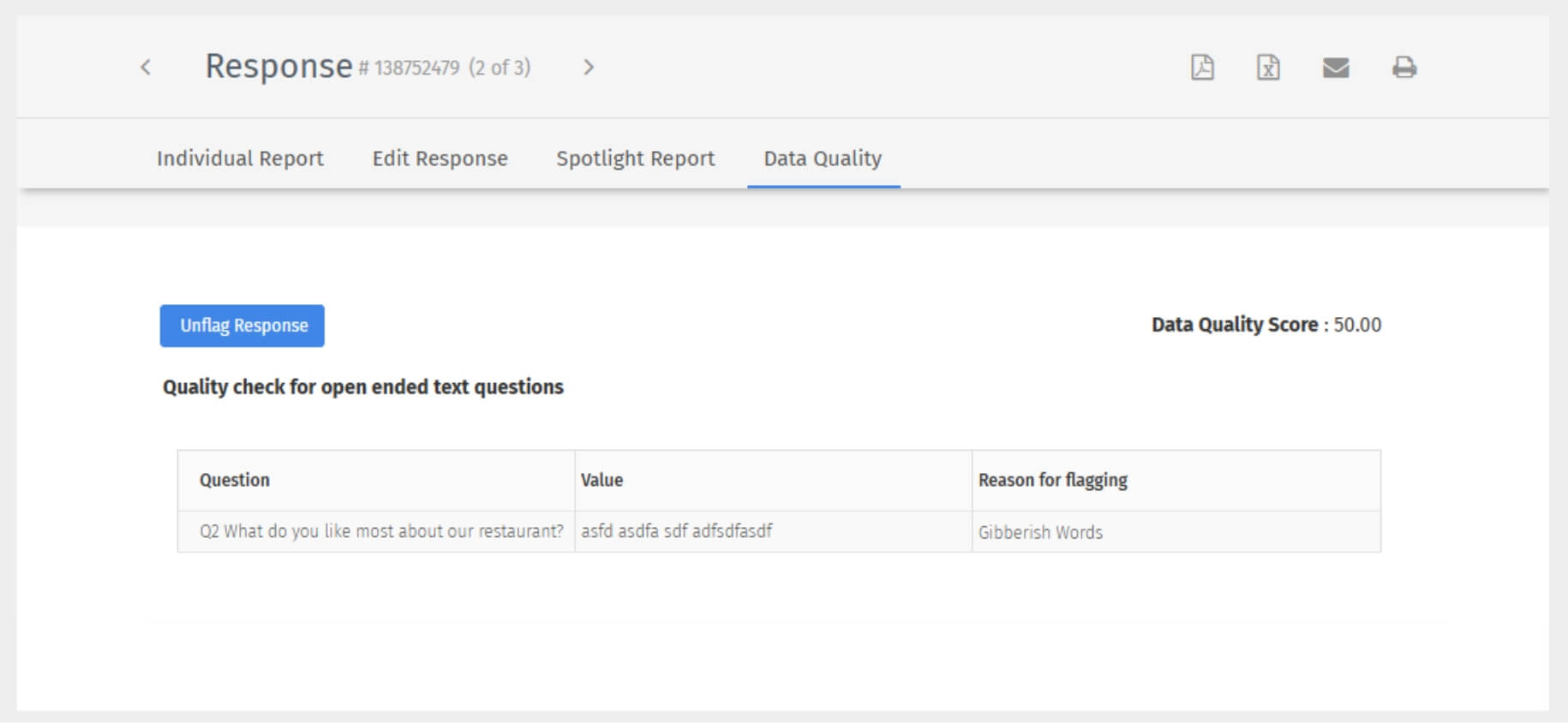 With our generative AI tool, you can natively identify open-ended survey responses if they were submitted by bots like ChatGPT or other automated AI tools. Screen out AI tool based plagiarised responses and improve the quality of survey data collected. Weed out gibberish data in surveys.
