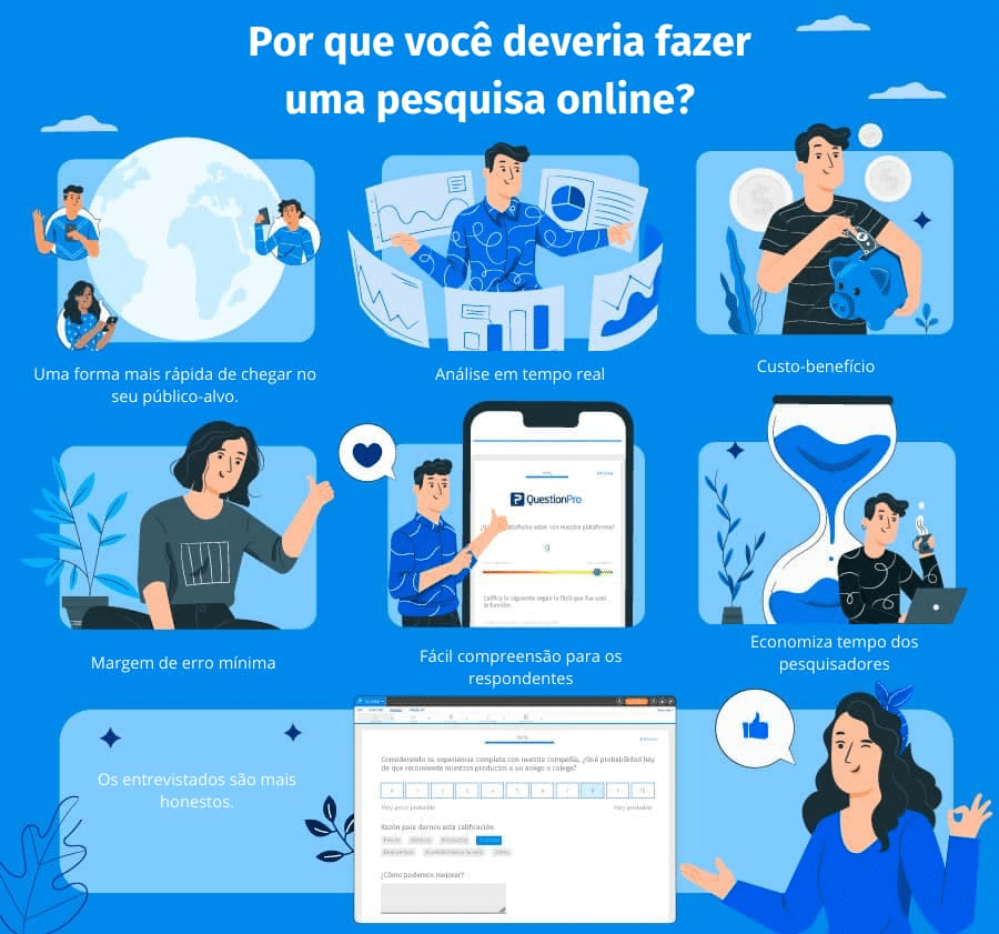 A QuestionPro é considerada por muitos profissionais como a melhor plataforma de pesquisa porque consegue unir, em um único ambiente, tudo o que empresas e pesquisadores precisam para transformar dados em decisões.