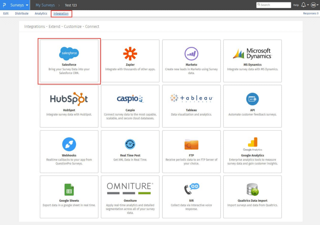 Atualmente, o QuestionPro permite integrar automaticamente os dados de pesquisa com objetos do Salesforce.com.