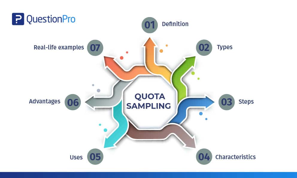 • Kvotprovtagning: På Kvotprovtagning Med denna urvalsmetod sker urvalet av medlemmar på grundval av en i förväg fastställd standard. I det här fallet, när ett urval bildas baserat på specifika egenskaper, kommer det skapade urvalet att ha samma egenskaper som finns i den totala populationen. Det är en snabb metod för att samla in prover.