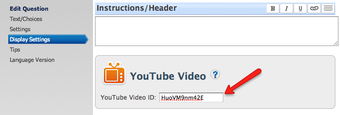 Once you click “Edit”, you’ll notice there is an option on the lefthand navigation for “Display Settings”, and once you click that, those settings include a field to enter a YouTube ID number.