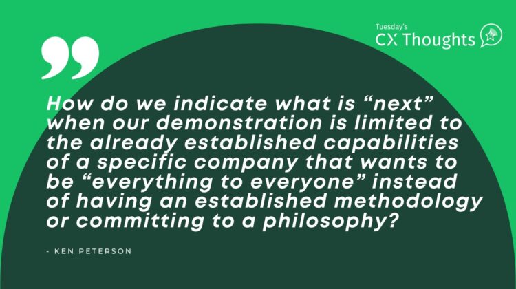 In the most recent response for an analyst request for information, I was taken aback by how structured the requirements were outlined. In fact, as I read through the requirements, all the tools for which we would be measured against seemed to be the exact tools that are offered by a single company – one of our competitors that consistently sits atop of that list. Do not get me wrong; I am not begrudging their performance. The part that I question is how this structured list allows any individual firm to show its innovation. How do we demonstrate what is “next” when our demonstration is limited to the already established capabilities of a specific company that wants to be “everything to everyone” instead of having an established methodology or committing to a philosophy?
