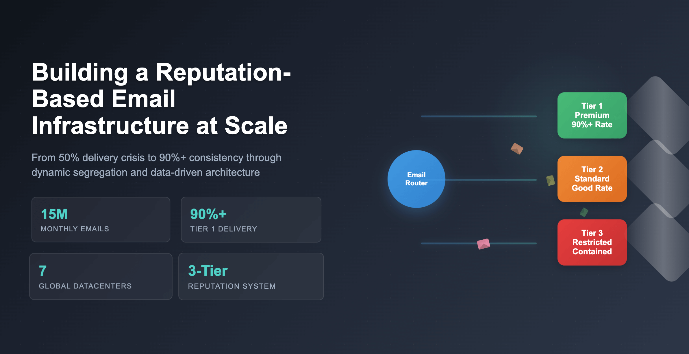 This is how we rebuilt our email system from a reactive, failure-prone infrastructure into a self-managing, reputation-based architecture that now consistently delivers over 90% of emails for our top-tier clients.